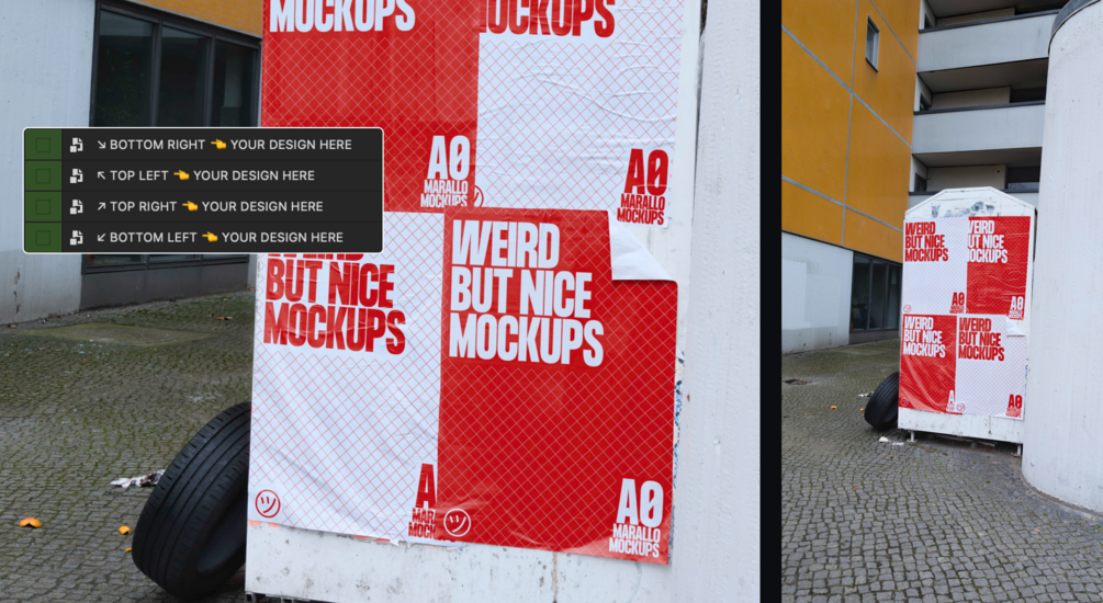 Bring your work to the real world on these 4 posters glued to a dumpster somewhere in Berlin.