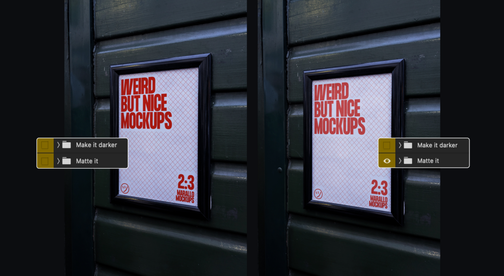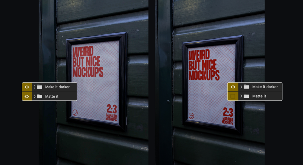 Adjust the reflection and brightness of the framed poster with the adjustment layers - or leave it as is.